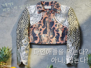 파인애플을 먹는다? 아니, 입는다!1. 비건(Vegan), 모든 동물성 재료를 제한하는 엄격한 채식주의를 이르는 말.비건은 식문화뿐 아니라 패션 업계에서도 트렌드로 부상 중!2. 자재를 얻기 위해 동물을 해치는 행위를 거부하고 지구 생태계의 지속가능성을 지향하는 소재를 사용한 비건가죽(Vegan Leather)이 주목받고 있습니다.파인애플, 사과, 포도, 선인장, 버섯 등 소재도 점차 확대되고 있죠.3. 그런데, 정말 파인애플을 입을 수 있을까요?4. 입을 수 있습니다! 피냐텍스(피나텍스, Piñatex)가 있거든요!5. 피냐텍스가