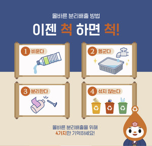 "분리수거? 일반쓰레기?"헷갈리는 재활용 쓰레기 배출법, '이것'만 기억하면 문제없어요!한손에 쓰레기를 들고 이게 재활용품인지, 일반쓰레기인지한참 고민해 본 경험, 다들 한 번씩 있으시죠?헷갈리기 쉬운 재활용 쓰레기 배출법, 이번 기회에 확실하게 정리해볼까요!■ 재활용 기본수칙"비우고 헹구고 분리해서 섞지 않기" 박스는 테이프, 철핀, 운송장 등을 제거하고 순수 종이만 버려주세요.페트병도 겉면의 라벨을 떼야 올바른 분리수거!캔, 병, 비닐 등은 버리기 전 물로 2~3번 헹군 뒤 배출해주세요.■ 비닐은 분리배출 표시 없어도 재활용 O