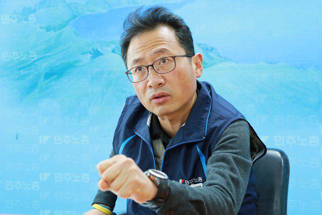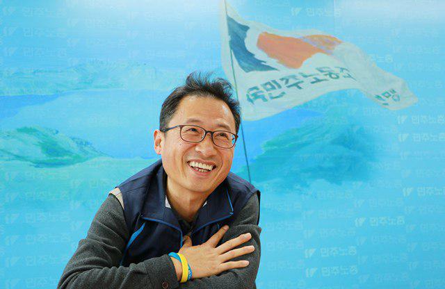 김 위원장은 지난해 선거에서 79만2899명 선거인단 중 32만8630명이 참여한 결선투표에서 21만6962표(66%)를 얻어 당선됐다. 김 위원장은 철도노조 위원장 출신으로 91년 옛 철도청에 입사해 노동조합 운동과 연을 맺었다. 당시 27살이었다. 2006년 철도노조 수석부위원장 시절 KTX 여승무원 파업에 함께했고, 철도위원장 시절인 2013년 수서발 KTX 민영화에 반대하는 총파업을 이끌었다. 그동안 3번 해고를 당했고, 2번 구속됐다.