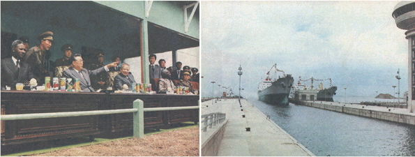 김일성 주석은 1981년 5월 남포갑문 건설을 발기한 후 1984년 4월과 1985년 9월에 김정일 당비서와 함께 현지지도하였다. 김일성 주석은 남포갑문 건설로 해상운수가 급격히 발전하게 되기 때문에 남포항을 확장 개건할 것과 남포시를 훌륭한 항구문화도시로 만들 것을 교시하였다(노동신문 1985년 9월 20일).