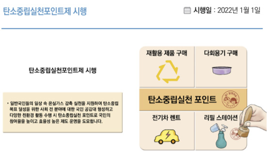 실생활 속 탄소 감축을 하는 확대하기 위해 탄소중립 실천시 인센티브를 제공하는 '탄소중립실천포인트제' 시행