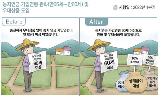 많은 농업인들이 농지연금 혜택을 누릴 수 있도록 가입연령 기준을 만 65세에서 만 60세 이상으로 완화