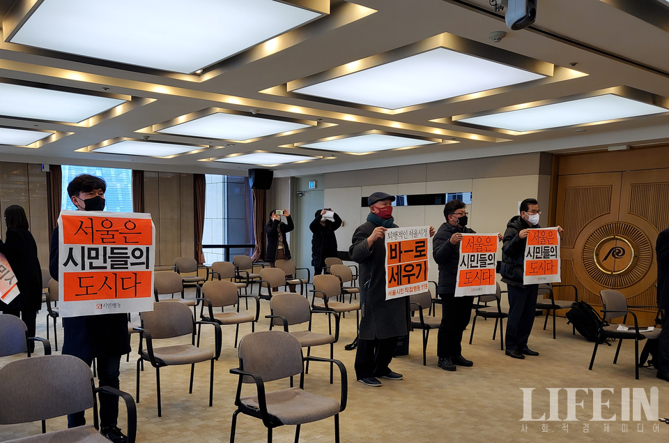 - 오!시민행동, 雪 속 "멈춰라, 오세훈! 구해라, 서울시!"