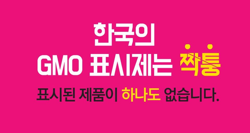 우리나라는 식용GMO(유전자변형농산물)를 연간 228만 톤 이상 수입한다. 국민 1인당 매년 약 46kg의 GMO를 먹고 있는 셈이다. 하지만, 어디서 어떻게 먹었는지 알기 어렵다. 현행 ‘GMO 표시제’는 GMO를 표시하라고 되어 있지만, 해당 상품의 99%는 아무런 표시가 없기 때문이다.