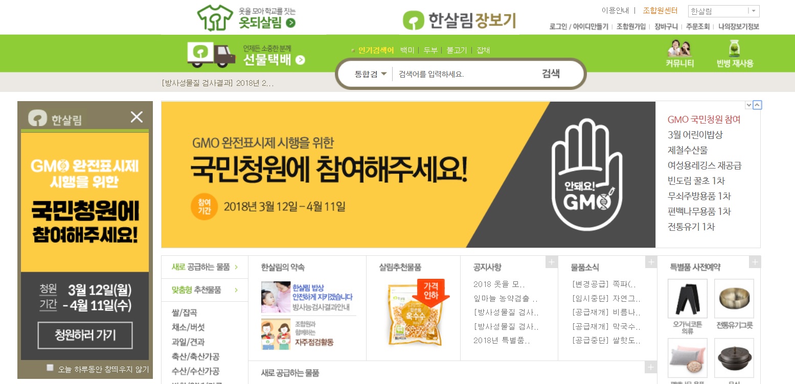 한살림연합과 아이쿱생협은 조합원이 많이 방문하는 장보기 사이트의 첫 메인 화면을 'GMO완전표시' 국민청원으로 변경했다. 행복중심생협, 두레생협은 홈페이지를 통해 청원을 독려하고 있으며, 경실련, 소비자시민모임 홈페이지에서는 배너로 국민청원 사이트를 연동시키고 있다.