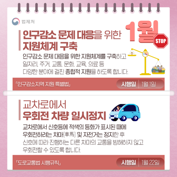 법제처는 2023년 1월부터 6월까지 총 397개 법령이 새로 시행된다 밝히고, 그중 국민이 꼭 알아두면 좋은 법령 10개를 선별해 소개했다.