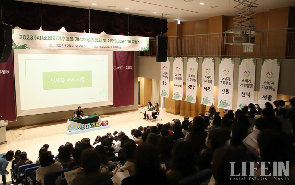 소비자기후행동(이하 소기행)이 23일 스페이스 살림 다목적홀에서 정회원 및 관계자들이 참석한 가운데 제4차 정기총회를 개최하고 김은정 상임대표의 연임을 의결했다.