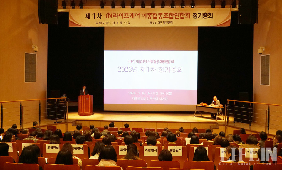 iN라이프케어 이종협동조합연합회가 새로운 시대에 요구되는 새로운 운동 프로젝트인 '라이프케어 운동'을 위한 힘찬 발걸음을 내디뎠다. 지난해 창립한 iN라이프케어 이종협동조합연합회는 16일 대전청소년위캔센터 대강당에서 110개 회원조합 단체 관계자가 참석한 가운데 '2023년 제1차 정기총회'를 개최했다.