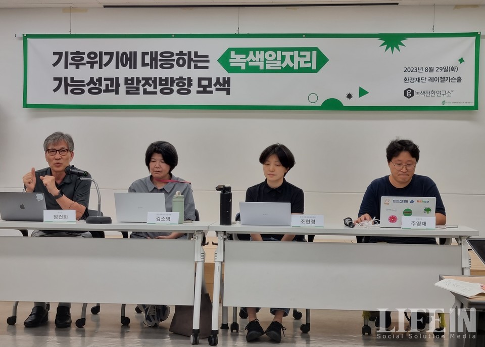 녹색전환연구소는 29일 환경재단 레이첼카슨홀에서 '기후위기에 대응하는 지역 녹색일자리 가능성과 발전방향 모색'이란 주제로 종합 녹색일자리 포럼을 개최했다.
