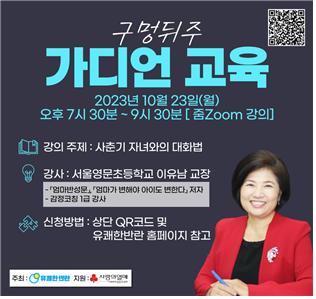 이번 가디언 교육 주제는 '사춘기 자녀와의 대화법'으로, 이유남 영문초등학교 교장이 강연자로 나선다. 도서<엄마 반성문>의 저자이기도 한 이유남 교장은 청소년 자녀와 행복하게 대화할 수 있는 방법을 공유할 예정이다. 강연은 이달 23일 오후 7시 30분에 온라인으로 진행된다.