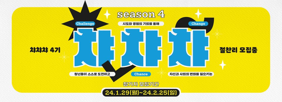 도전하고자 하는 열정과 성실히 참여할 준비가 된 19세에서 34세 사이의 누구나 개인 또는 4인 이하의 팀을 이뤄 지원할 수 있다. 지원서는 구글 설문지를 통해 간단히 작성하도록 만들어졌으며, 서류전형은 블라인드 평가로 진행된다. 지원서 접수는 2월 25일까지 진행된다. 챠챠챠 4기 모집에 대한 보다 자세한 내용은 유쾌한반란 홈페이지를 참조하면 된다.