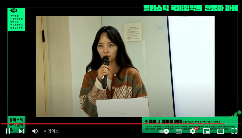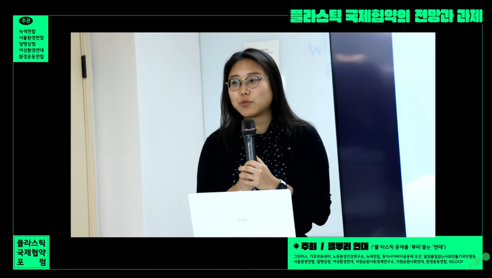 회담이 본격적으로 진행되기 전 시점, 플뿌리연대('플'라스틱 문제를 '뿌리'뽑는 '연대': 그린피스, 기후변화센터, 노동환경건강연구소, 녹색연합, 동아시아바다공동체 오션, 발암물질없는사회만들기국민행동, 서울환경연합, 알맹상점, 여성환경연대, 자원순환사회경제연구소, 자원순환사회연대, 환경운동연합, RELOOP)가 온라인 포럼 '플라스틱 국제협약의 전망과 과제: 어떻게 대응할 것인가?'를 9일 유튜브 채널로 개최했다.