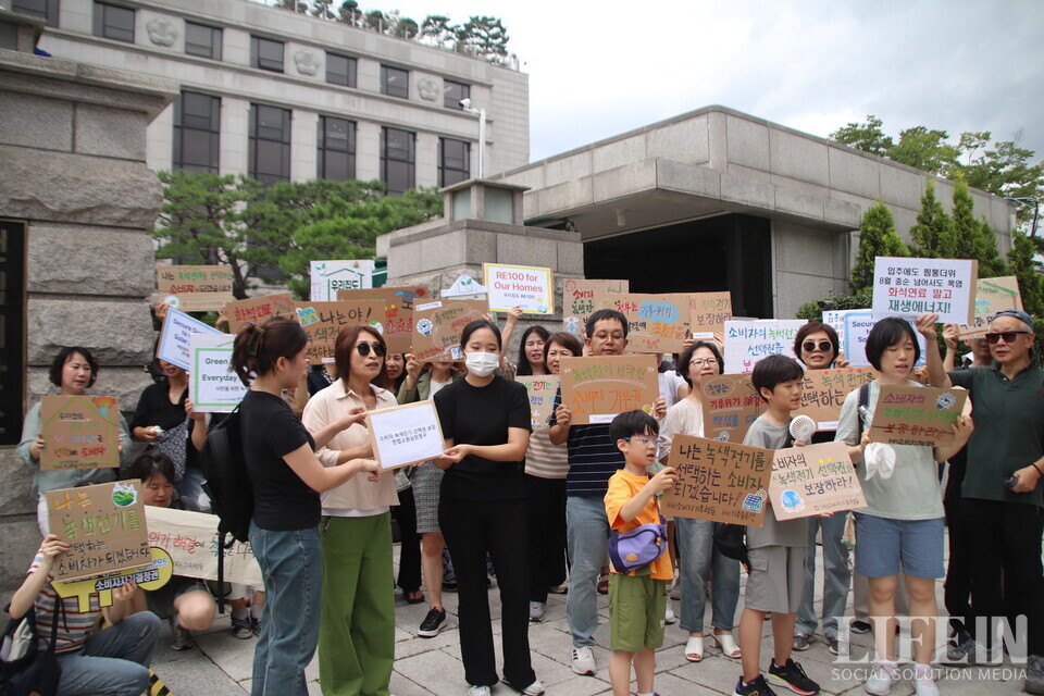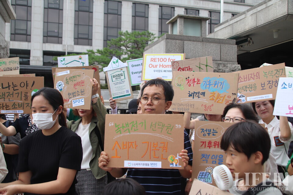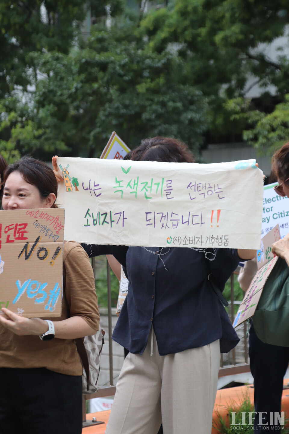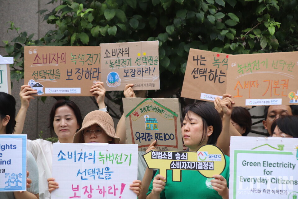 에너지의 날을 맞아 녹색전기를 향한 소비자 행동 단체의 움직임이 포착됐다. 22일, 한국전력 앞에서 (사)소비자기후행동과 (사)기후솔루션이 '소비자 녹색전기 선택권 보장' 헌법소원 청구 기자회견을 열었다. 두 단체는 ▲산업부는 소비자가 재생에너지를 구매할 수 있는 제도를 마련하라 ▲한국전력공사는 소비자가 재생에너지를 사용할 수 있도록 설비와 시스템을 제공하라 ▲헌법재판소는 소비자에게 재생에너지 구매를 허용하지 않는 산업부 고시 조항이 위헌임을 확인하라 외치며, 소비자 주권 행사로서 대항했다.
