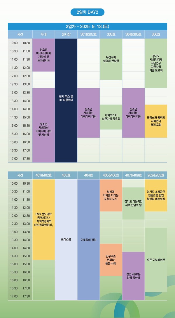 특히, 청소년 사회혁신 아이디어 대회, 프랑스·퀘벡 사회연대경제 포럼 등 국제 교류 세션도 준비되어 있어 다채로운 논의가 이어질 전망이다.