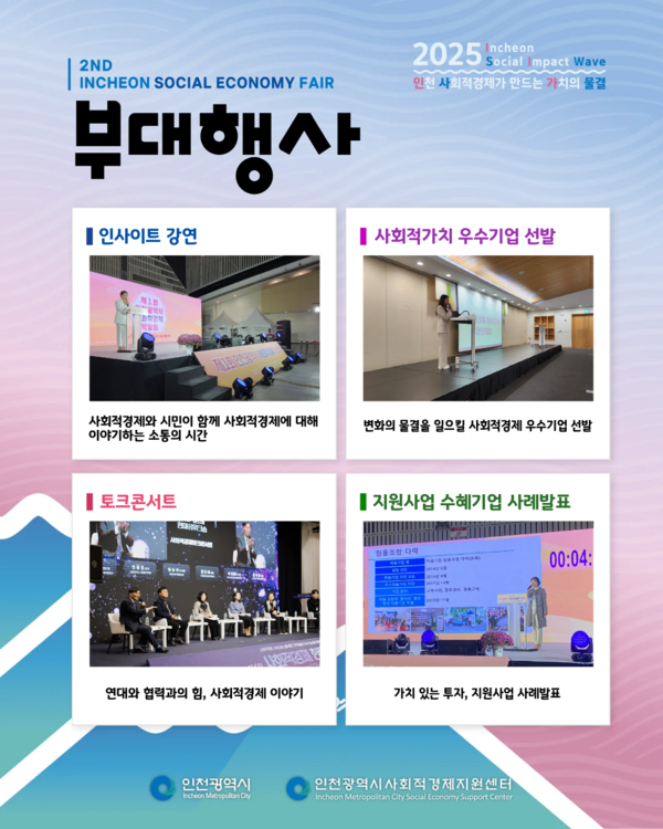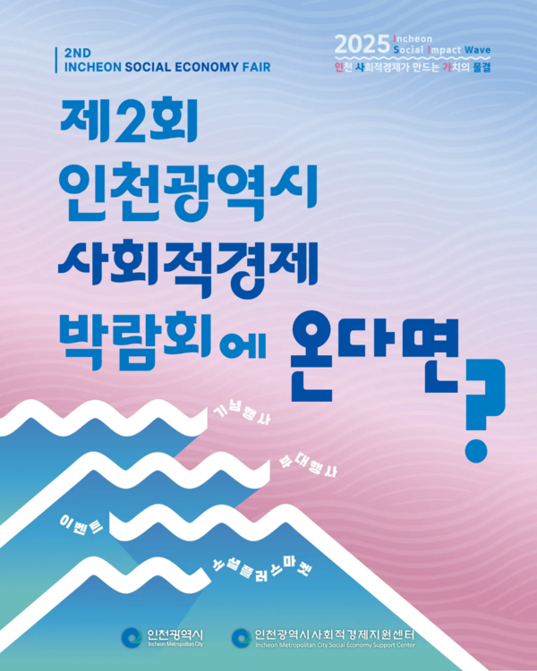인천광역시와 인천광역시사회적경제지원센터가 주최하는 '제2회 인천광역시 사회적경제박람회'가 열린다. 올해 행사는 '2025 Incheon Social Impact Wave – 인천 사회적경제가 만드는 가치의 물결'을 주제로, 사회적경제 기업과 시민이 함께 어울리는 자리로 마련됐다.