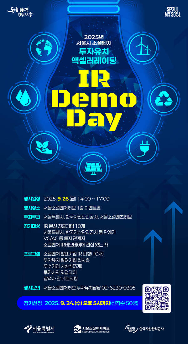 서울소셜벤처허브는 '2025년 소셜벤처 투자유치 액셀러레이팅'을 통해 유망한 소셜벤처를 발굴하고, 투자 유치와 역량 강화를 지원하고 있다. 이에 따라 오는 26일 오후 2시부터 5시까지 서울소셜벤처허브 1층 이벤트홀에서 '2025년 서울시 소셜벤처 IR 데모데이'를 개최한다.