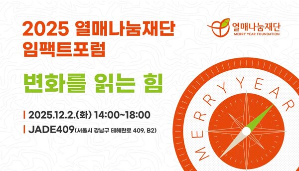 사회복지법인 열매나눔재단이 임팩트 생태계의 흐름을 점검하고 미래 전략을 모색하기 위해 '2025 열매나눔재단 임팩트포럼 - 변화를 읽는 힘'을 연다. 급변하는 사회경제 환경 속에서 지속가능한 성장을 고민하는 임팩트 기업들에게 실제 변화의 흐름과 현장의 경험을 공유하는 자리로 마련됐다.