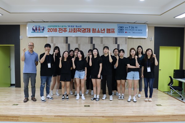 지난 7월 26일 전주도시혁신센터 1층 다울마당에서 전주시의 청소년들을 대상으로 '2018 전주 사회적경제 청소년 캠프'가 진행됐다. 이번 캠프는 전주시 사회적경제지원센터에서 모집한 청소년 사회적경제 동아리 'SE:로운'(새로운) 구성원들과 함께 사회적경제에 대해 생각해보는 시간을 마련하고자 기획됐다.