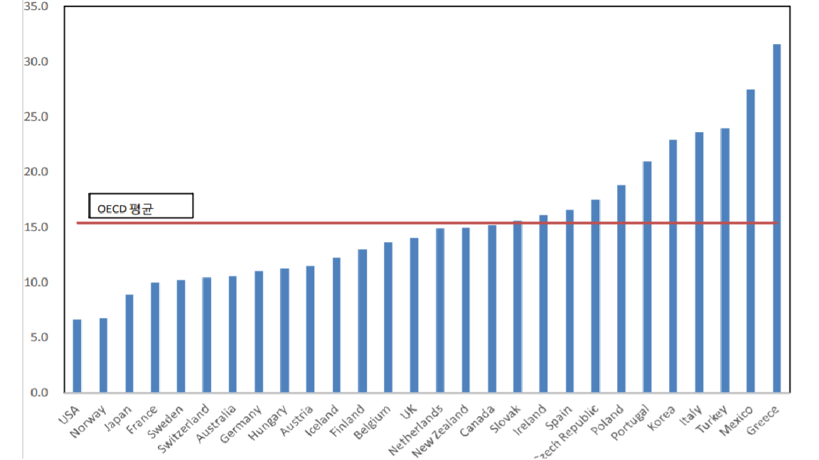 우리나라는 자영업자들의 비율이 높다. 2018년 초를 기준으로 하여 취업자 4명 중 3명이 자영업자다. 우리나라의 자영업자 비율은 OECD를 기준으로 4위, OECD 평균인 15% 보다 더 높은 수준인 20%대다. 최근에는 감소 추세에 있지만, 2018년을 기준으로 21.3% 가량이 자영업자다.