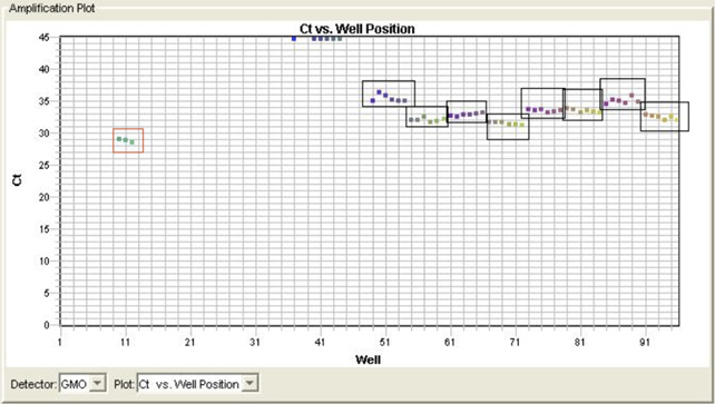 GMO 대두나 옥수수 성적서에 포함되는 전기영동(electrophoresis)*(전기영동 - 주로 생체 고분자들의 성질을 연구하고, 그것들을 분석, 분리, 정제하는 중요한 방법 중에 하나) 사진도 하나의 사진에 여러 개의 샘플 결과 값이 들어가 있으나 '1 1'로 해당 시료를 표시하여 나가고 있지만 RT-PCR 사진의 경우 1 1 같은 식별표시를 따로 하기 어려워 표시하지 않고 있다.