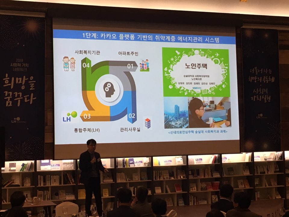 올해 진행된 'LH-사회적경제조직 협업사업 아이디어 공모'에는 84건의 아이디어가 접수돼 최종 7개가 선정됐다. 그리고, 행사 당일에는 우수 사례 시상이 있었다. 최우수상은 [오요리아시아]의 'LH 희망상가를 활용한 간편식 소셜 다이닝 카페', 우수상은 [투파더]의 '임대아파트 실시간 에너지 복지 환경 서비스를 통한 사회적 가치 창출'과 [두꺼비하우징]의 '폭서, 혹한 대응 에너지 선순환형 독거노인 열환경개선사업'이 선정됐다.