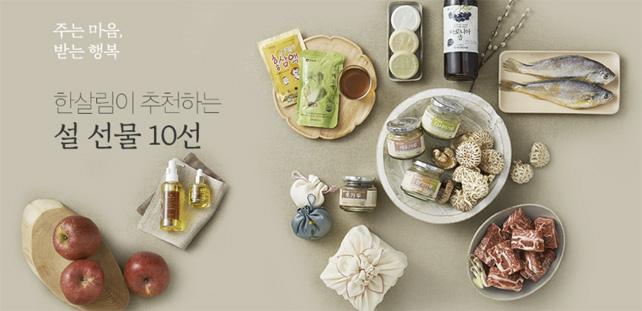 한살림은 매장과 온라인을 통해 다음달 1일까지 설 선물 판매를 진행한다. 한살림이 정한 생산출하 기준에 따라 제초제와 생장조절제는 일체 사용하지 않은 '선물용 사과(5kg)', 유기재배한 백화고, 흑화고, 동고, 표고채 등 혼합 표고버섯 모음인 '혼합표고선물모음1호', 화학조미료를 대신할 수 있는 천연양념으로 기호와 음식에 따라 골라 쓸 수 있는 '천연양념모음', 국내 연안(제주와 목포근해)에서 잡은 것으로 가공 없이 소금간만 하여 그대로 공급한 '굴비모음1(10마리/1.1kg)', 피부자극이 적고 동백오일이 다량 함유된 '자연그대로 동백오일모음', 안토시아닌이 풍부하게 함유된 '아로니아즙모음(720ml*2병)' 등을 각각 1만원대에서 7만원대에 구매할 수 있다.
