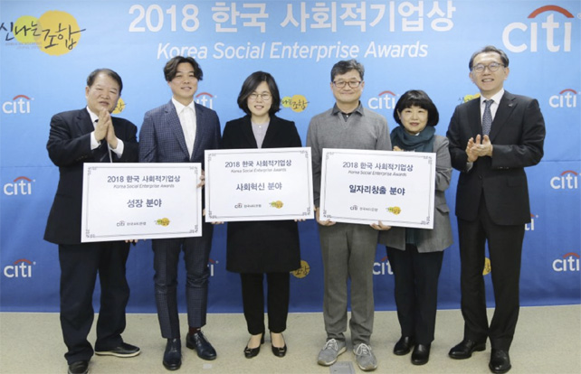 신나는조합과 한국씨티은행은 23일 서울 성동구에 위치한 소셜캠퍼스 온에서 '2018 한국 사회적기업상' 시상식을 개최했다.