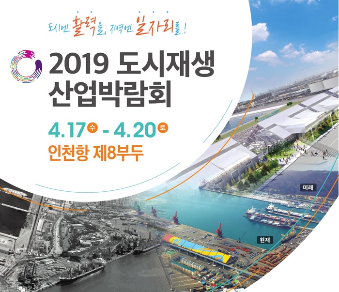 '2019 도시재생산업박람회'는 국토교통부, 인천광역시, 문화일보가 공동주관한다. 도시재생에 관한 정보 교류와 소통의 장을 마련하기 위해 4월 17일부터 20일까지 4일간, 인천항 제8부두에서 개최된다.