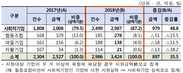 정부가 올해 사회적경제기업에 3230억 원의 금융지원을 추진한다. 이는 지난해 지원금액(1937억원) 보다 1.67배 웃돈 것으로, 지난해 12월 발표한 공급 목표액(2430억원)보다 800억 원가량 늘어난 규모이다.