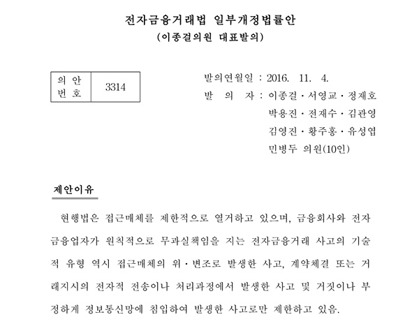2016년 11월 이종걸 의원(더불어민주당)은 금융회사의 책임을 강화하는 전자금융거래법 일부개정안을 대표발의 했고 2017년 2월 상정됐다. 지금도 우리는 작은 소망이 모여 법 개정이 되기를 바라고 있다. 지금 이 상태는 매우 비정상적인 상태이기 때문에 어떤 식으로든 변화해야 한다. 기존의 피해자 보호는 얼마나 될지 결과는 알 수 없지만, 우리의 노력은 멈추지 않을 것이다.