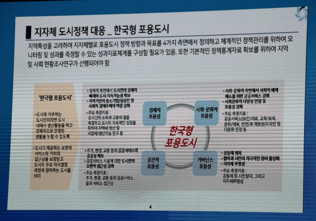 "도시포용성 지수는 개별 도시가 갖고 있는 문제점을 반영해서 지역별로 평가될 수 있게 개발되어야 합니다."