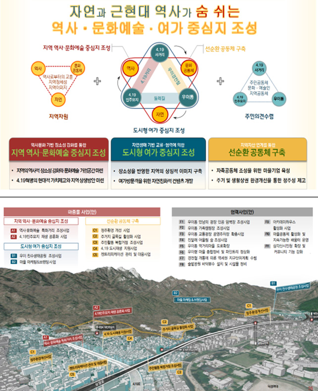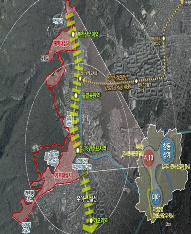 서울시는 4.19사거리 일대 도시재생활성화사업을 통해 4.19 사거리 및 우이동 일대를 지역 역사· 문화예술· 도시형 여가 중심지로 2022년까지 조성할 예정이다.