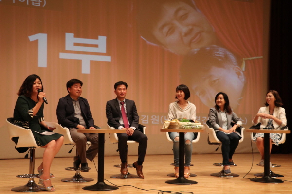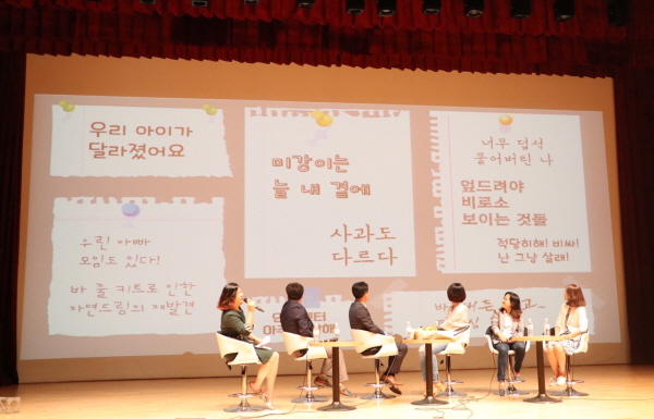토크쇼 패널 참가자들이 사전 질문을 미리 뽑고 질문에 답하는 방식으로 이야기를 이끌어 갔다. 사진 이상미.
