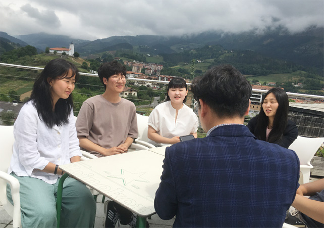 이렇게 MTA에는 다양한 나라의 청년들이 참여하고 있다. 스페인, 미국, 한국, 코스타리카, 이집트 등등. MTA에서 교육을 받으면서 창업을 한 학생들을 만나기로 했다. 빌바오 시내에 있는 캠퍼스에 공동 사무실이 있다고 하여 그곳으로 갔다. MTA는 철저하게 공동 작업이다. 개인 1인 창업이 아니라 팀원 2인 이상이 참여해야 하고 사업에 필요한 사람들은 외부가 됐던 내부가 됐던 협업으로 참여시킬 수 있다. 그런데 이런 창업 훈련을 1학년 2학기부터 한다고 해서 너무 일찍 하는 것이 아니냐고 물었다. 그에 대한 답변은 1학년 때부터 현실과 부딪혀봐야 깨지고 배우고 하여 3, 4학년 되면 그나마 성공할 수 있는 창업이 가능할 것이기 때문이라고 한다. 몬드라곤의 실용주의가 재현되는 것 같았다.