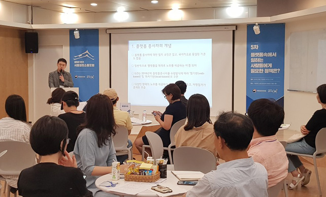 발제자들은 "시장 패러다임이 변화하고 있는 만큼 플랫폼 노동자처럼 초단기 노동 등에 대한 배려, 보호에도 주의를 기울여야 한다"며 "정부가 서둘러 직접 근로자성을 판단할 수 있는 새로운 기준을 제시해 보호 범위를 정하고, 사회적 합의가 이뤄질 수 있도록 노력해야 한다"고 지적했다.