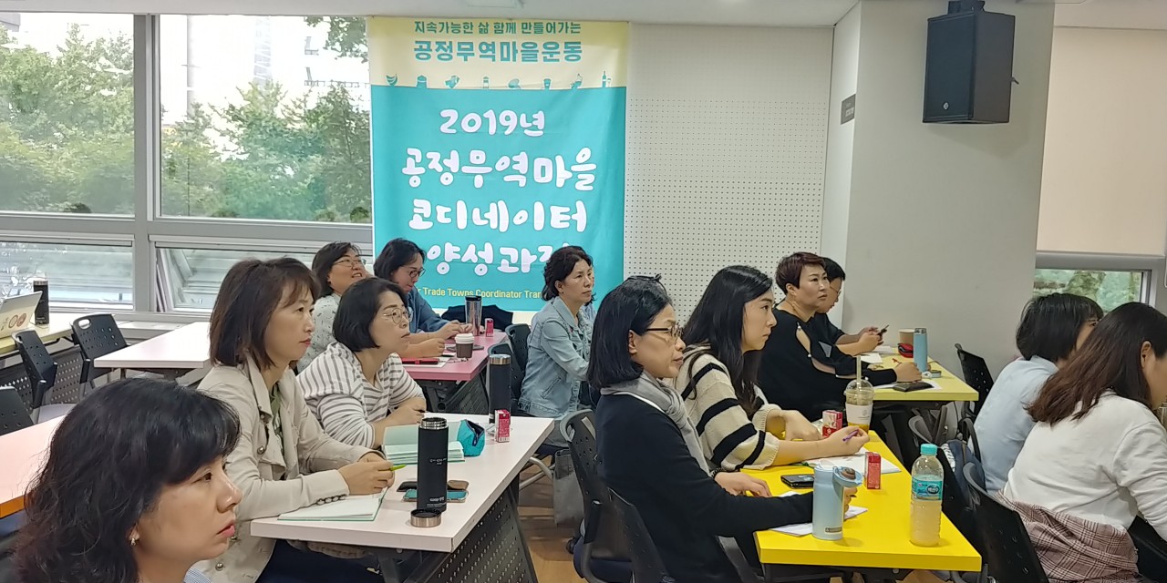 익숙지 않은 말인 ‘공정무역마을 코디네이터’로부터 시작한 공정무역마을만들기 활동은 (사)참여하고 행동하는 소비자의 정원에서 공정무역마을 코디네이터 양성과정 1기 모집 공고를 접하며 시작되었다. (사)참여하고 행동하는 소비자의 정원에서 쿠피협동조합과 함께 아이쿱생협의 후원으로 8월 13일을 시작으로 매주 한 번씩 공정무역의 이해, 생산지 이야기, 공정무역 인증, 공정무역마을을 주제로 토론과 세미나, 강의와 워크숍 등을 통해 8주 만에 수료하는 공정무역마을 코디네이터 양성과정을 진행하였다.