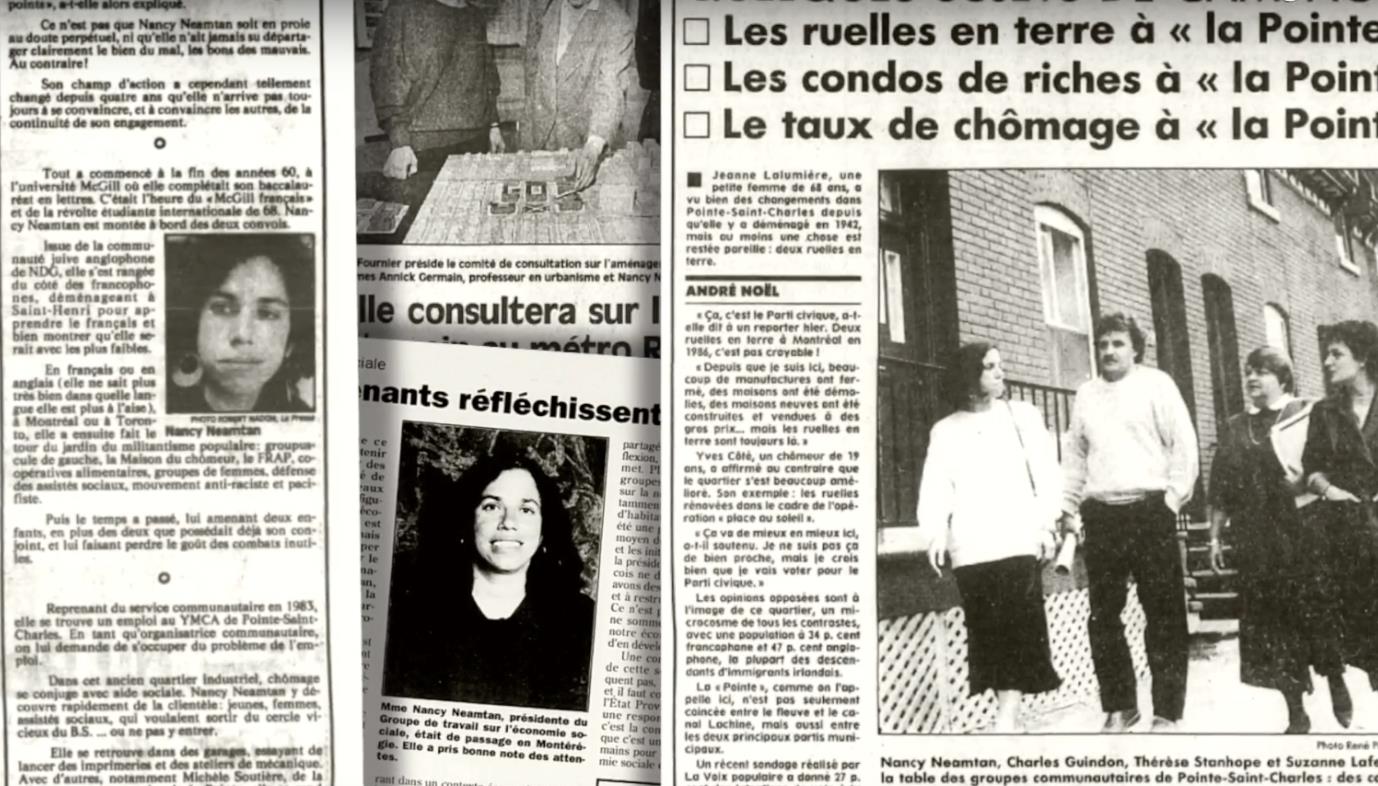 1984년, 낸시 님탄을 비롯한 활동가들은 뽀앵뜨 생-샤를(Pointe-Saint-Charles) 경제발전 프로그램 조직을 수립하여 운영했다. 기존의 비영리단체들이 자선활동이나 배분사업에 집중했던 것과는 달리, 이 그룹은 해당지역의 경제 발전과 고용 창출을 위해 필요한 일들을 기획하고 자원을 연결하는 허브 역할을 떠맡았다. 실업자의 재취업 기회를 알선하며, 해당 지역 실업자들의 특성에 맞는 직업 훈련 프로그램을 운영하는 등 각 지역의 실업 인구의 특성에 맞는 프로그램을 기획하며 지방자치단체, 기업, 노조 및 지역 공동체 비영리단체들 간의 협의 테이블을 만들어 지역의 빈곤문제 개선 및 경제발전을 위한 프로그램의 중심 역할을 수행했다. 이런 프로그램에 필요한 재원을 확보하기 위해 정부 공공기관, 기업 및 비영리 재단들을 설득하여 필요한 지원을 이끌어냈다.