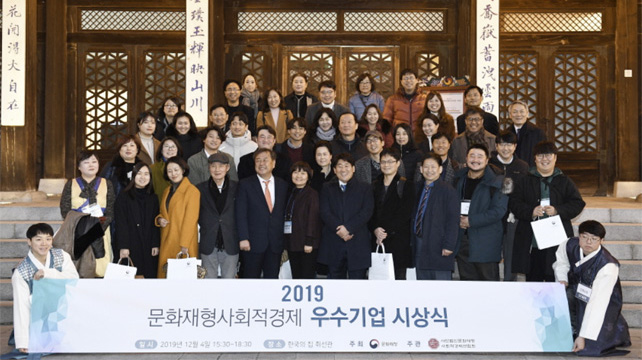 문화재청은 "문화재형사회적경제연합회와 함께 4일 오후 3시 30분 한국의 집(서울 중구)에서 '2019 문화재형 사회적경제 우수기업 시상식'을 개최했다"고 밝혔다.