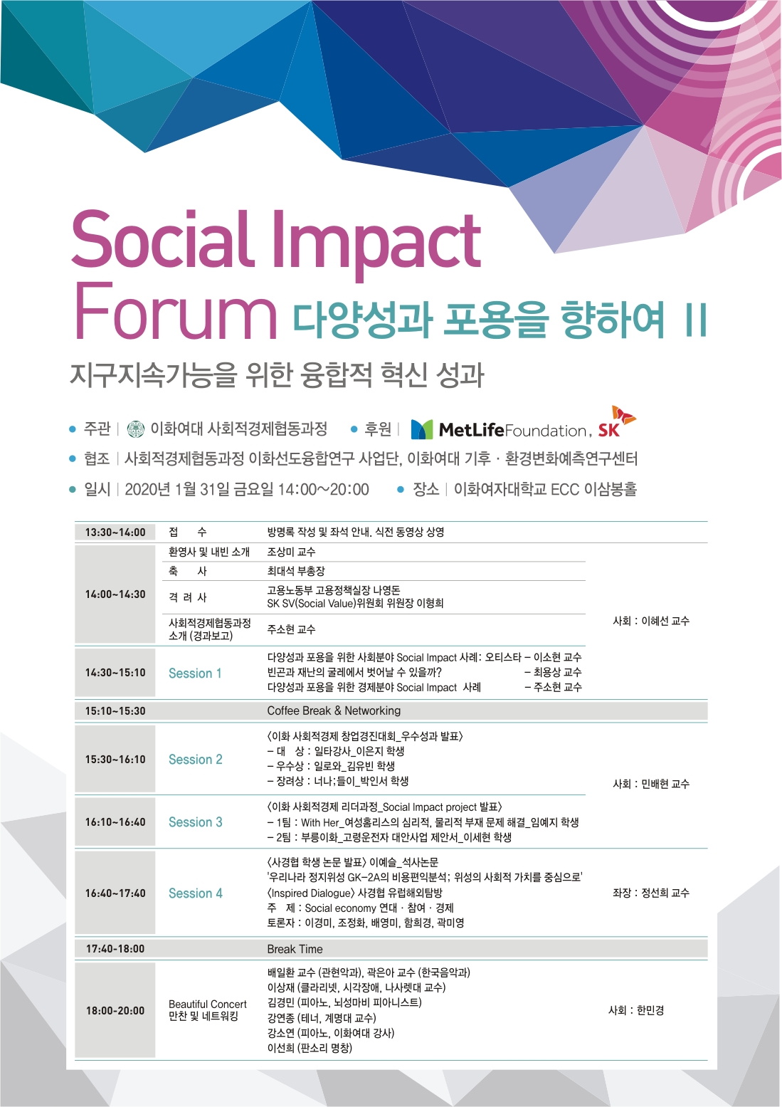 이화여대 사회적경제협동과정에서 소셜임팩트 포럼을 개최한다.