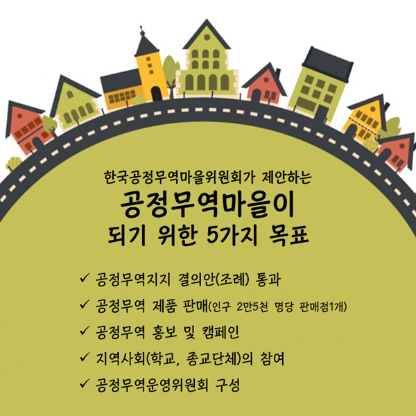 공정무역마을운동(http://fairtradetownskorea.org/)은 '공정한 거래'를 삶의 원칙으로 하는 풀뿌리 시민운동과 시민사회가 공공부문과 협력하여 지역사회를 활성화하고 시민공동체의 역량을 키우며 공정무역 활성화를 통한 세계 빈곤퇴치에 기여할 수 있다. 그뿐만 아니라, 전 세계적인 공정무역 커뮤니티 운동으로서, 지역사회와 지방정부가 함께 공정무역에 실질적인 기여를 하는 가장 효율적인 캠페인으로 평가받고 있다.